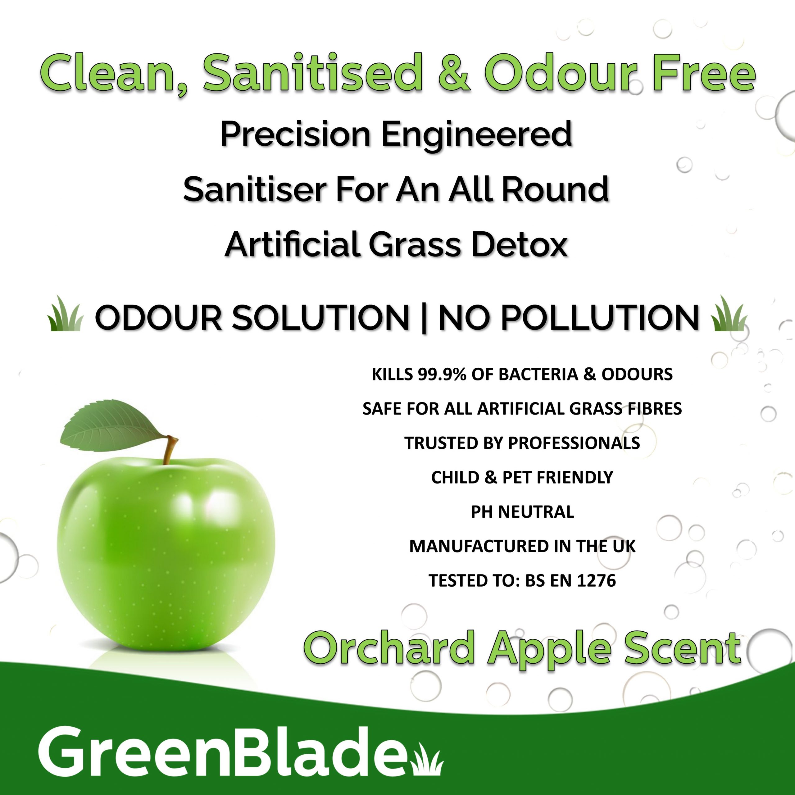 Don’t forget that GreenBlade Pure Pro is an all-round garden sanitiser, so it’s not just limited to your artificial grass. It can be used on paths, patios, driveways and just about anywhere you want to keep clean, eradicate any bacteria and have that amazing fragrance fill your outdoor spaces. Comforted by knowing its safe for children and pets!